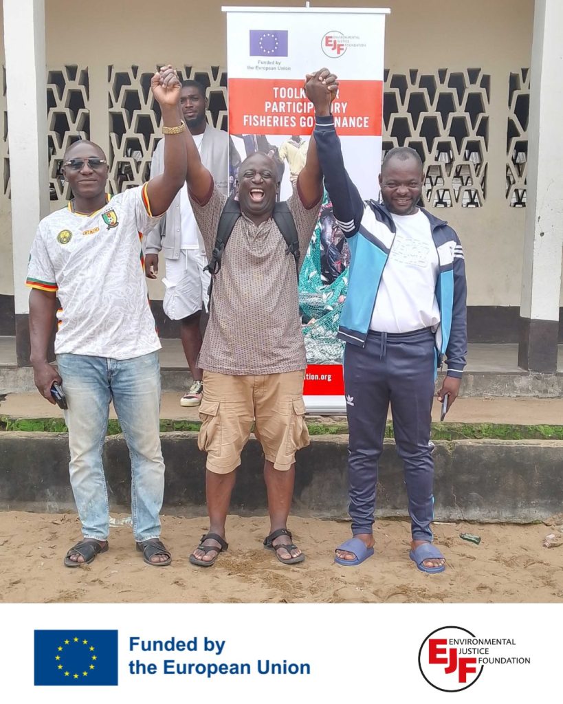 Nsowa Immaculate Munkeng, Chargé de programme à EJF pour l’ Afrique francophone, a déclaré : « La création réussie des CRGP de Yoyo et Mbiako offre offre un modèle éprouvé de gouvernance des pêches dirigée par la communauté qui peut être reproduit à travers le Cameroun. Il est en accord avec la politique nationale tout en plaçant les personnes et les écosystèmes au premier plan, soutenant ainsi les objectifs plus larges du Cameroun en matière de pêches durables, de conservation de la biodiversité et de communautés côtières résilientes.»